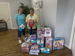 We frequently need clothing in various sizes, diapers, toys, and other items. Also we need larger items such as high chairs, pack and plays, baby bathtubs, etc. These may be delivered to our office. Please contact us if you have a donation or questions.